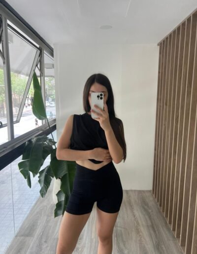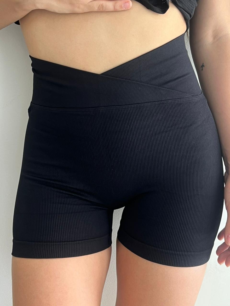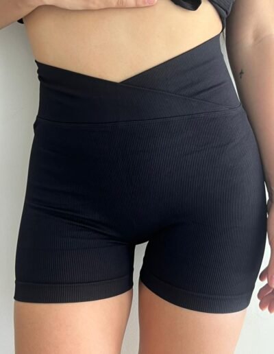 Calza corta con frunce y cintura crudada